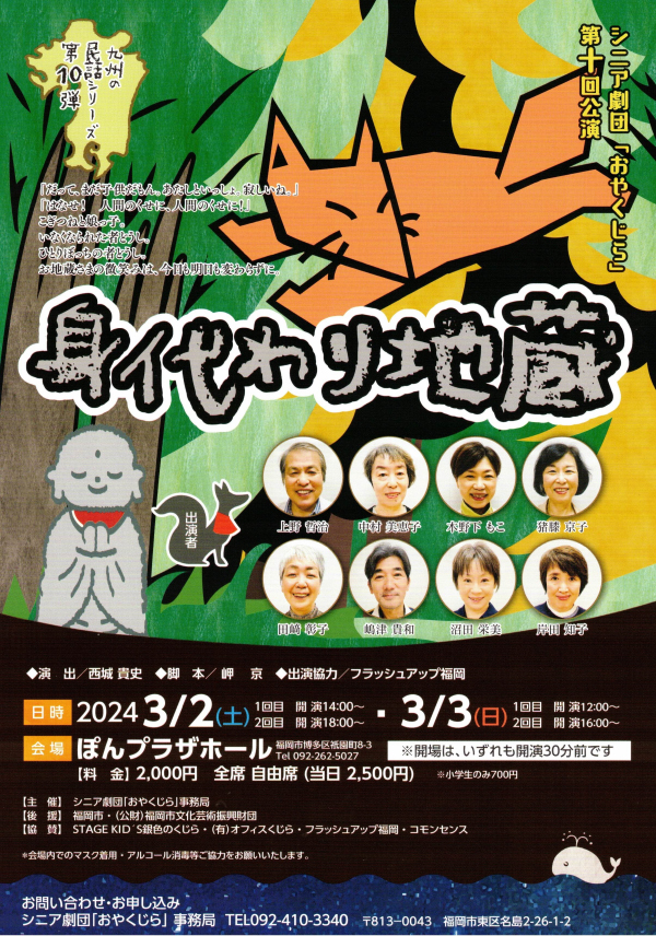 気になる方はお気軽に【オフィスくじら内 シニア劇団「おやくじら」事務局(TEL 092-410-3340)】までお問合せ下さい😆