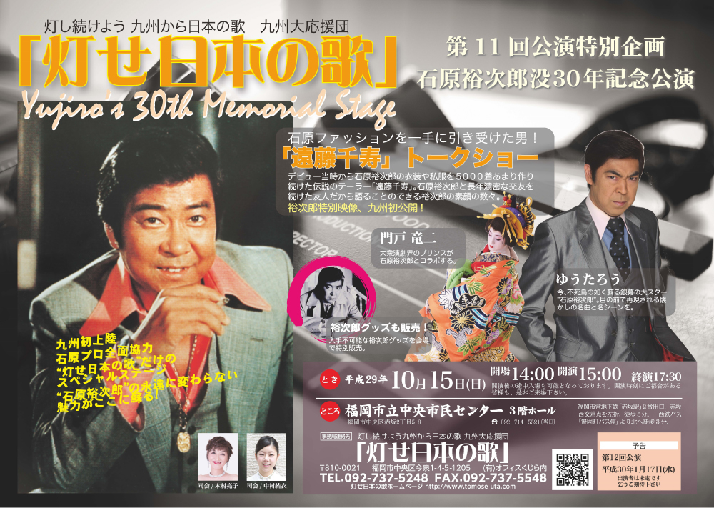 詳しくは【オフィスくじら内 「灯せ日本の歌」事務局(TEL 092-737-5248)】までお問合せください。