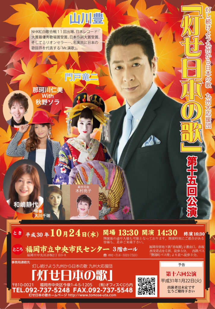 詳しくは【オフィスくじら内 「灯せ日本の歌」事務局(TEL 092-737-5248)】までお問合せください。